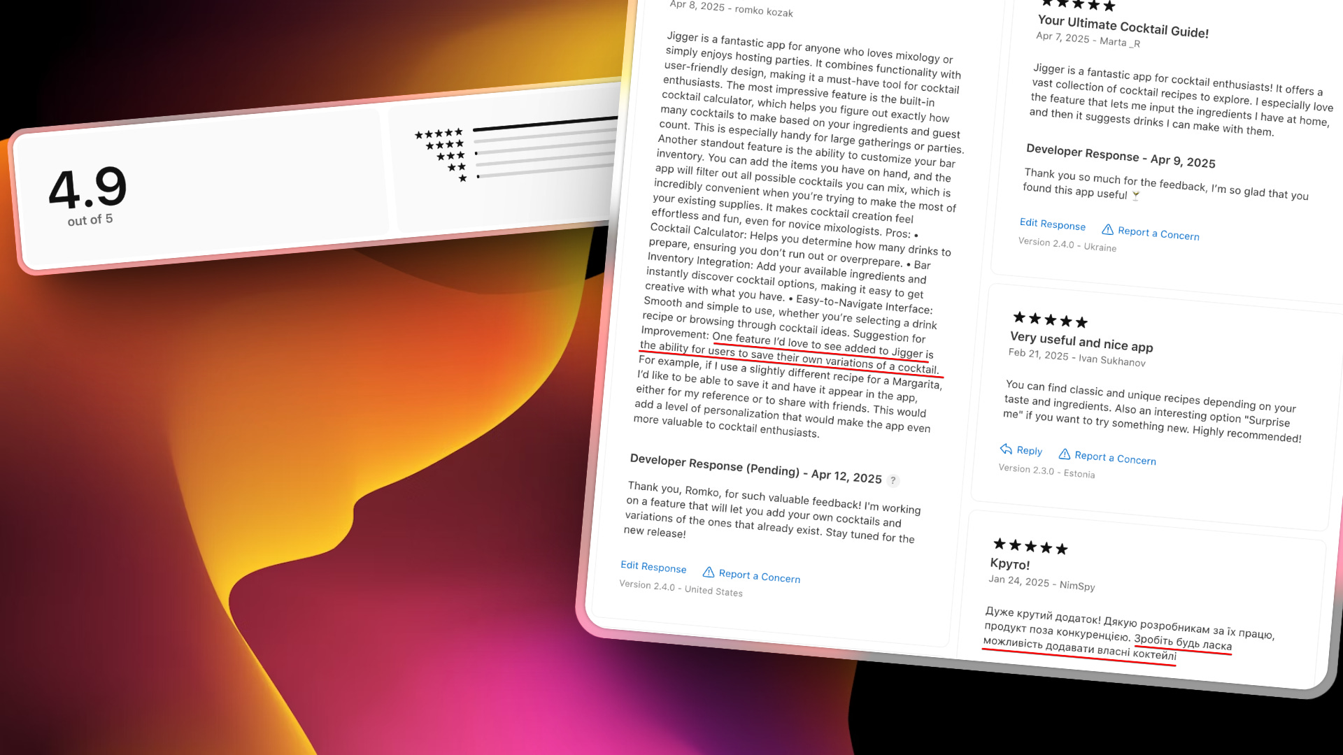 But the most exciting improvement happened in the Ukrainian App Store. Jigger is now:
